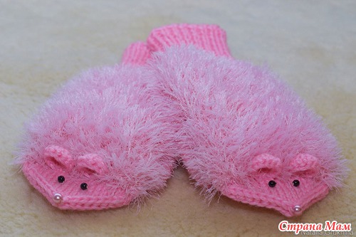 Вот такие забавные варежки в виде ежиков попались мне на просторах интернета. Надеюсь, что и вам они понравятся) Да и вязать их несложно: