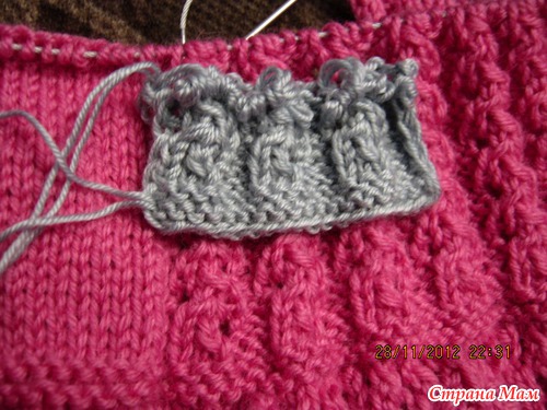 История этого недовяза началась больше 1,5 года назад. Попросила меня свекровь связать ей теплый красивый кардиган, я купила пряжу, начала искать подходящую модель, пробовать вязать. Это типа рукав)