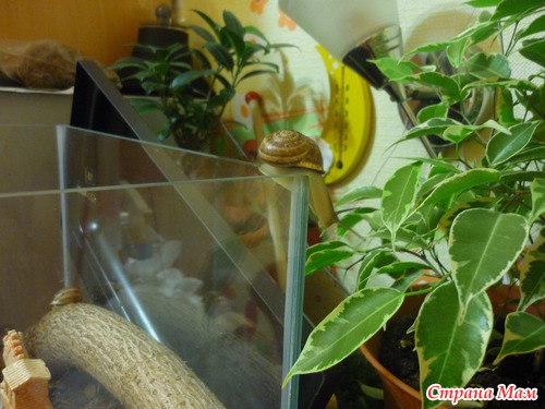 А кроме них у нас еще собака и кошка. Некоторые друзья у меня спрашивали, почему я их просто не выкинула, а я так не могу. Вырвали их из родной среды обитания, привезли не известно куда (пусть и по незнанию) и вот теперь приходится заботится. Будь это тараканы я бы их уничтожила, а улиток не смогла. К тому же они оказались такими забавными. одна даже поднимала крышку и убегала.