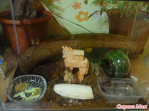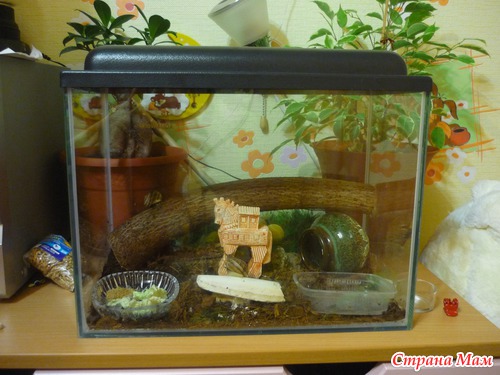В итоге купили мы своим новоселам аквариум, кокосовый субстракт как наполнитель (весь город обежала, еле нашла) и вот уже 2,5 месяца у нас новые питомцы.