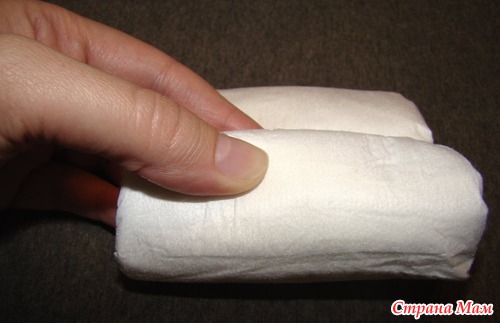 Берем памперс и начинаем скручивать его к середине