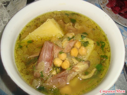 И кладем в бульон с горошком.