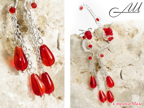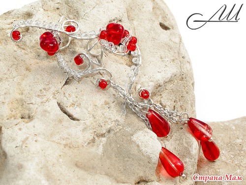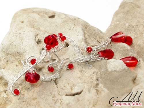 Материалы: Посеребрённая немецкая проволока, стеклянные чешские бусины, бисер, цепочки