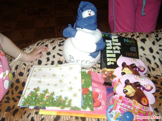 И мы уже начали получать новогодние подарочки. Нам пришел подарочек по игре "Дед мороз, ты подарки нам принес?". А прислала нам его замечательная девушка Гульнара http://gulnarika.stranamam.ru/. Смотрите и завидуйте