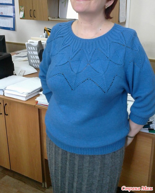 Вот такая у меня похвастушка. Мой любимый фасон кофточки. Я таких уже штук 7-8 связала из разных пряж и на разных людей.