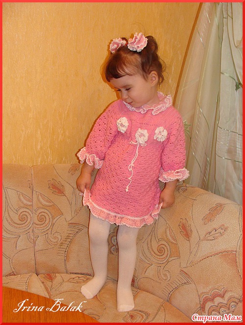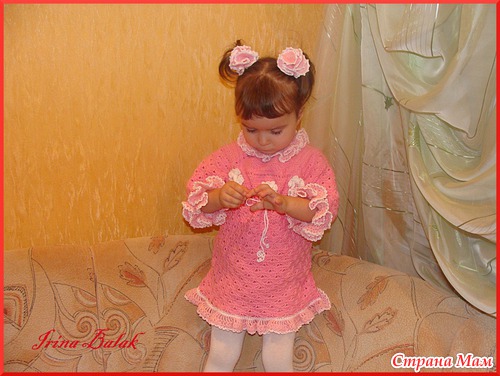 Супер зефирка! Очень понравилось платьице. Жаль, что у меня старшая уже выросла, а младший мальчик, а то, глядя на Ваше платье захотелось такое же связать.