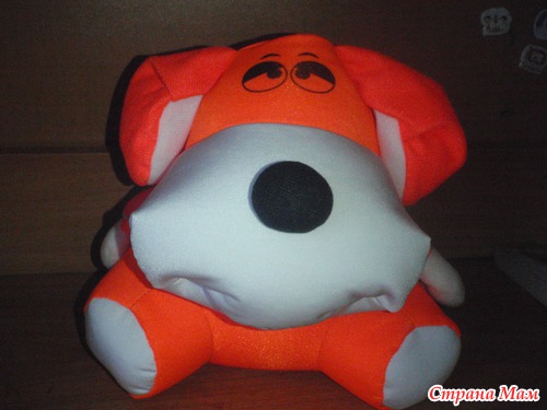 В общем взяла с нее как подарочек. Вот такая у мя терь собачка Апельсинка мимо которой спокойно пройти не могу.И детям приглянулась)))