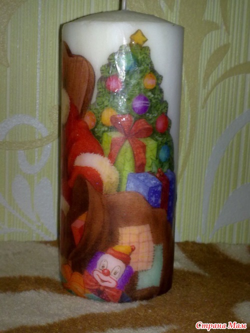 я незнаю... еще не пробовала... мне Нина говорила что феном тоже можно... вот я собираюсь попробовать... в инэте должны быть мастер-классы... введи в поисковик "МК декупаж свечки феном"
