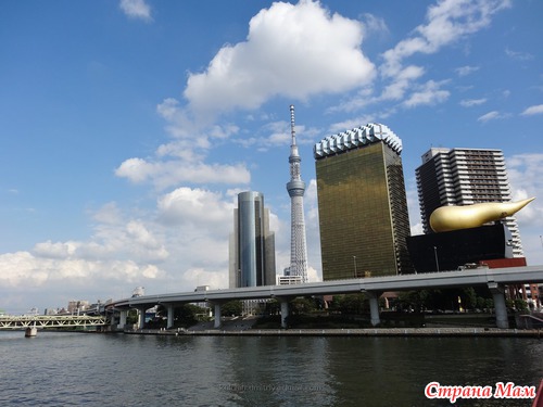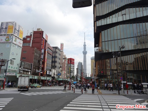 вдалеке виднеется Tokyo Sky Tree-телевизионная вышка со смотровыми площадками, открытая в этом году.
