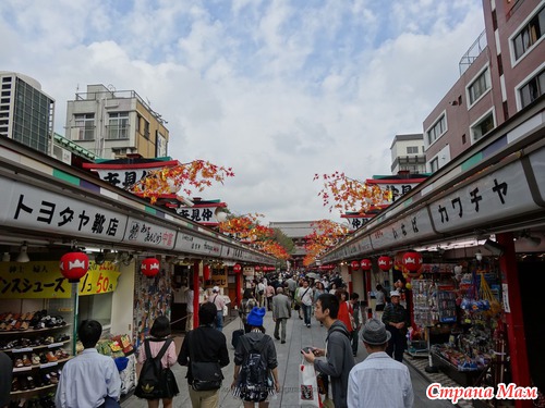 Пошли мы гулять в по окрестностям - сначала - в 15 мин ходьбы от нашей гостиницы - Храм Асакуса-Кэннон и торговая улица