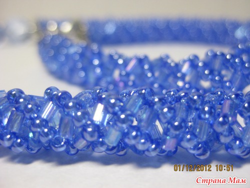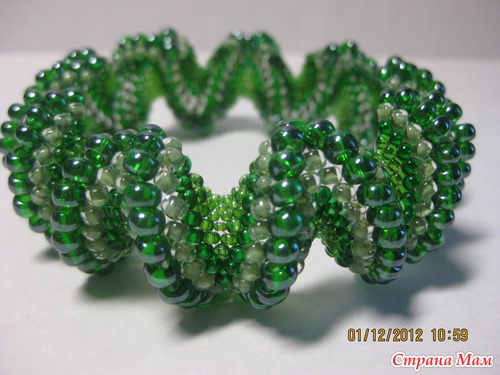 А не знаю как правильно он называется, но судя по интернету это какая то классика жанра, все плетут, но как называется не понятно. Я полазила полазила и это может относится к русскому жгуту( но их два варианта), это один из двух. Есть жгут из стекляруса по такому же принципу. В общем как это делала я. Набрала три бисеринки одну рубку- три раза. Замыкаем в кольцо. Этот первый ряд. Во втором набираем три бисеринки одну рубку и пропускаем иглу в бисеринку перед рубкой двигаясь по спирали. И так до желаемой длины. Первый ряд получается корявенький, я его потом распустила, это общая рекомендация почти для всех видов жгутов, распускать первые ряды.