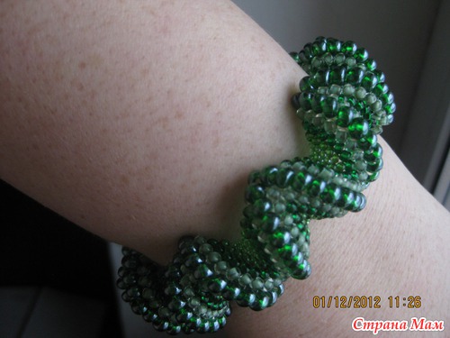 Изумительные вещи! Сколько грамм бисера ушло на зеленый браслет, к примеру? Я большие вещи еще не затевала, боюсь ошибиться с количеством. Подскажите, пожалуйста!