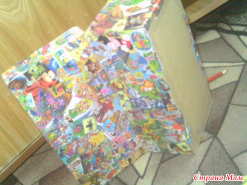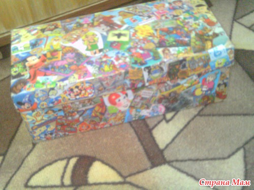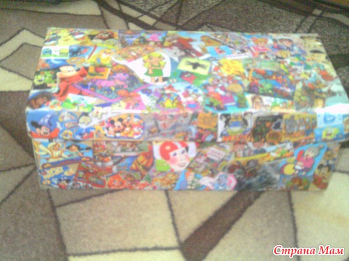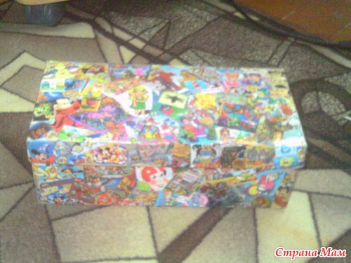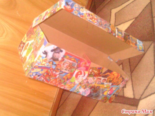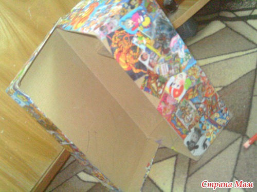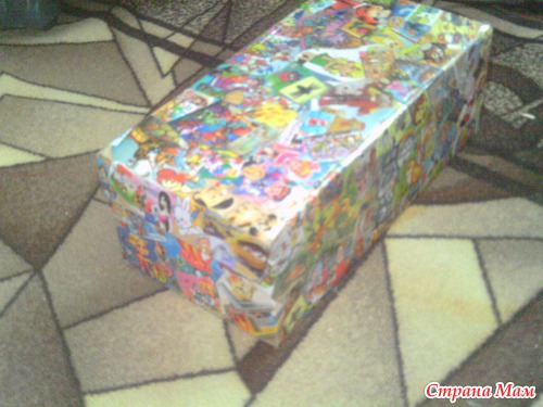 Нашли коробку из под обуви, старые журналы, скотч, ножницы. и начали творить...