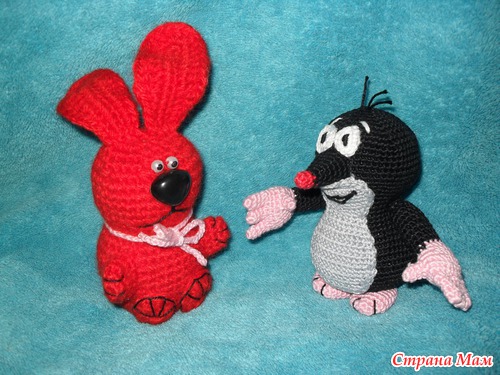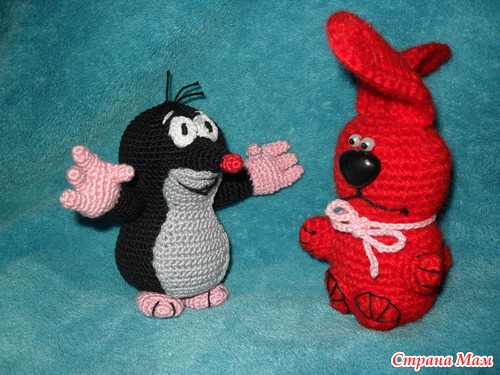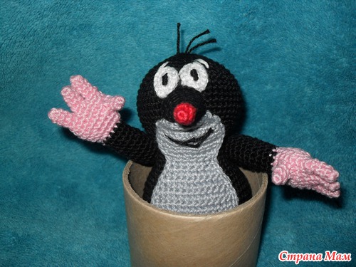 Недавно подруга попросила меня связать для своего сына крота из старого чехословацкого мультика. Я облазила весь интернет и нашла очень подробное и понятное описание. Очень рада, что не пришлось придумывать самой. Спасибо большое автору за подробное описание. Вот ссылка http://www.liveinternet.ru/community/2296102/post192393614/