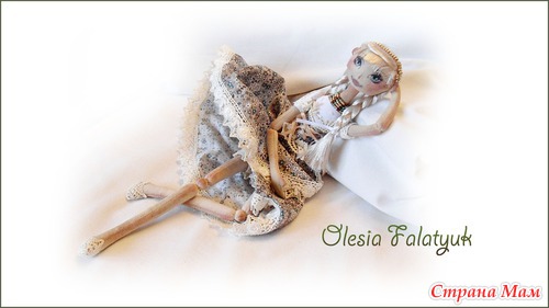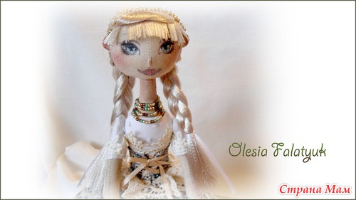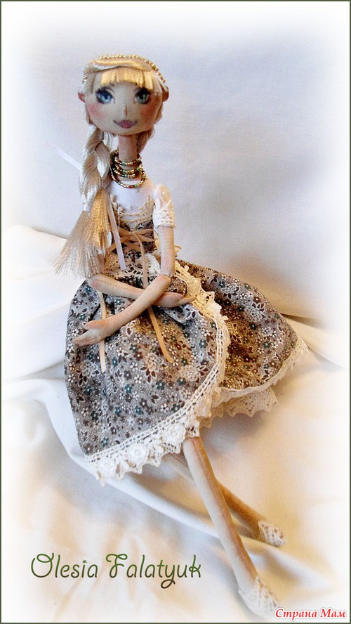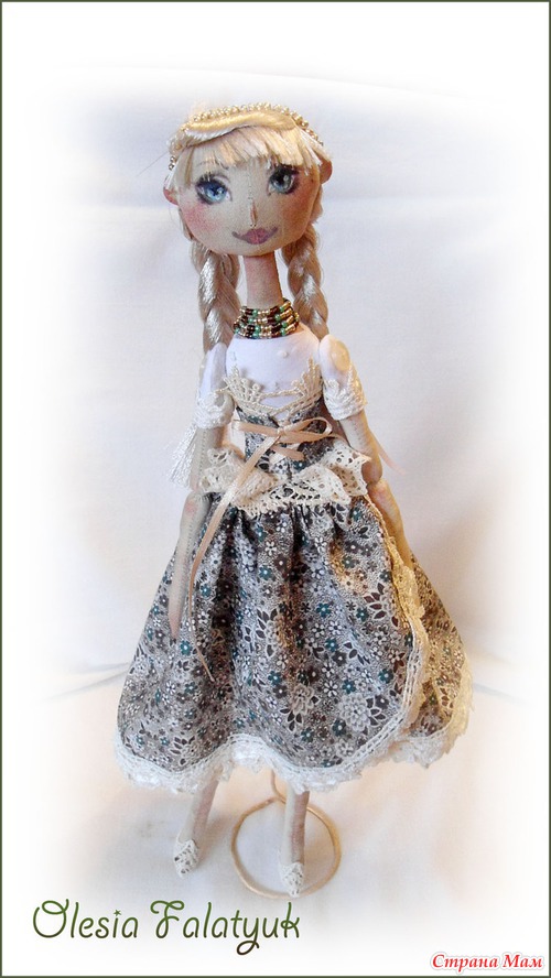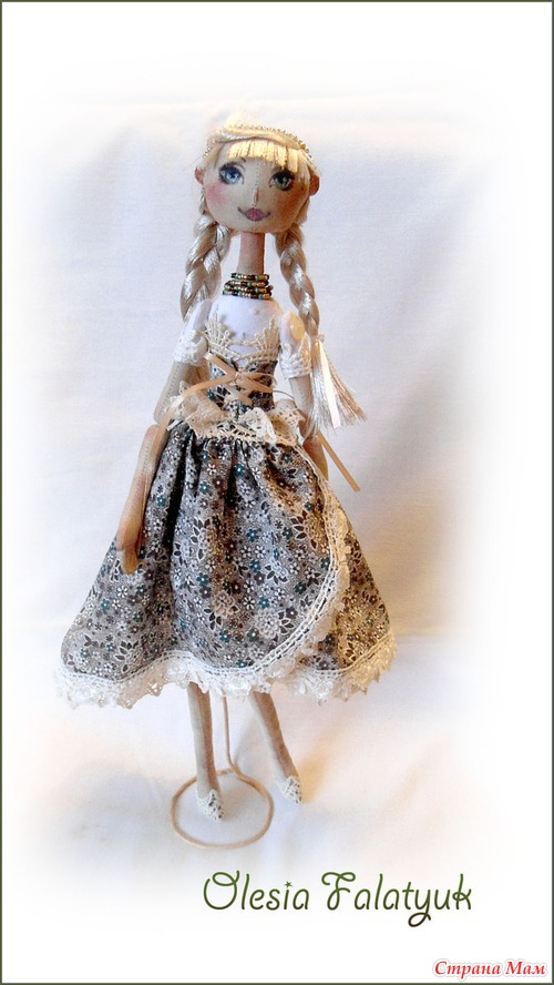 Кукла одета в пышную юбку, корсет и белую блузу. Для отделки использованы кружева, два вида. Бисер и ленты.