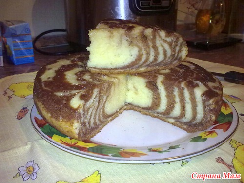 Вот такую "Зебру" пекла я уже много раз, нам очень нравится, получается воздушная, в меру сладкая, рецепт брала с сайта мультиварка. ру. (поделилась рецептом девушка под ником lestra) рецепт дан для мультиварки Рanasonic - 18, но я делала в своей Redmond М-20 ничего не меняя, только режим Выпечка у меня автоматический, время не выставляется, но за один режим все пропеклось.