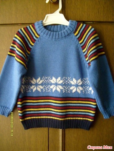 Пуловер в зависимости от расцветки подходит и мальчикам, и девочкам. Этот я вязала мальчику.