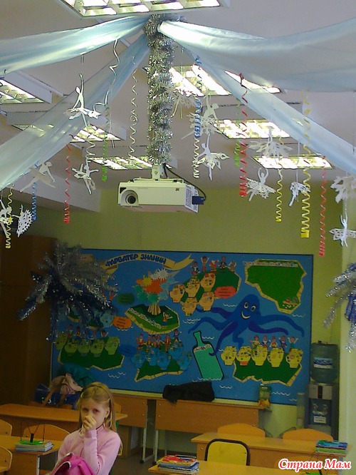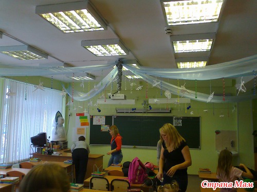 В субботу украшали класс к Новому году. Хочу поделиться с вами идеей как можно украсить класс быстро и недорого.