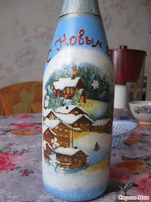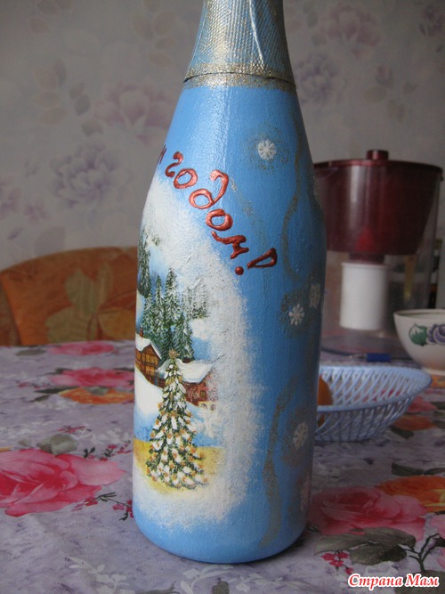 Вот такая бутылочка получилась в технике декупаж.