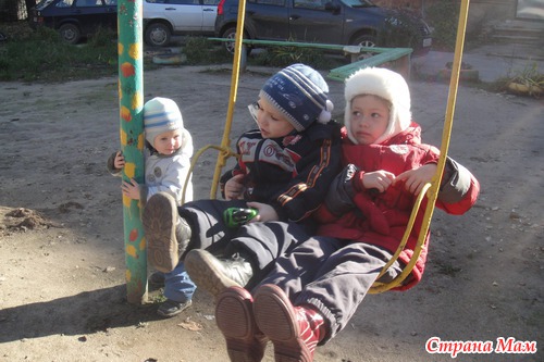 Пока я дома резала капусту и морковку для животных из мини-зоопарка, детвора оккупировала качели