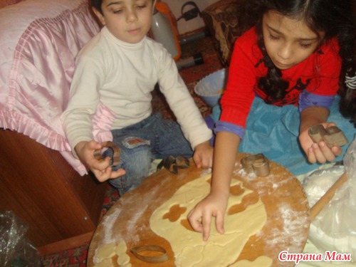 Раскатаем тонко-тонко. тольщиной1-2 см. и вырезаем печенке. Дружно товарище, дружно!!!