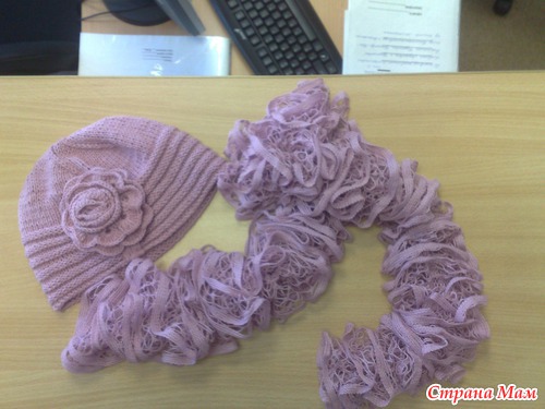 вчера мама высмотрела мой комплект, сказала, что тоже что - то подобное хочет, пряжу сама выбрала, сказала, чтобы и варежки были и на шею что - нибудь, уже задумки есть, свяжу - покажу