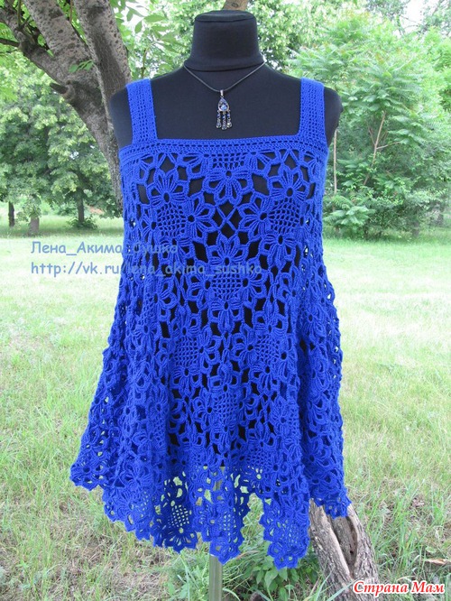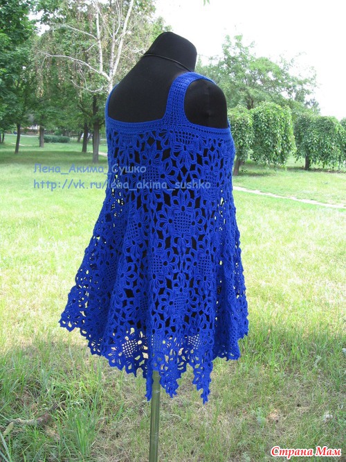 А из каких ниточек вы вязали? А то я давно на этот сарафан смотрю, а образец начинаю - некрасиво У меня наверное нитки тонковаты, я очень тонкие люблю. Но ради такой красоты с радостью откажусь от привычек и возьму потолще, только вот не знаю, какие