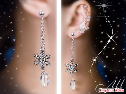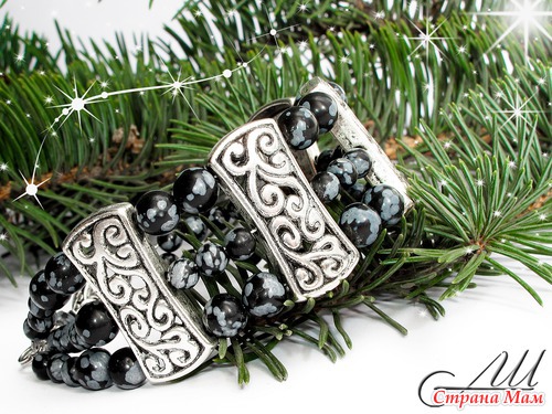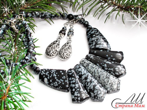 Материалы: Обсидиан, металлофурнитура под серебро, швензы из хирургической стали