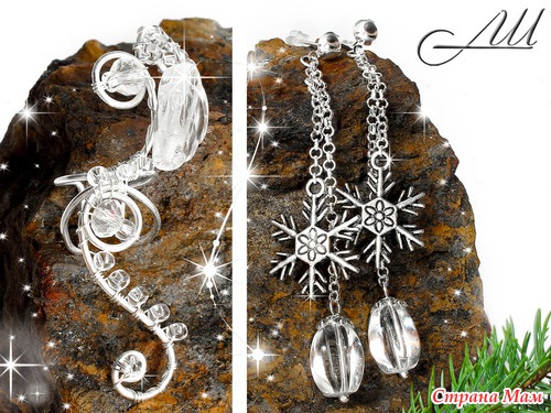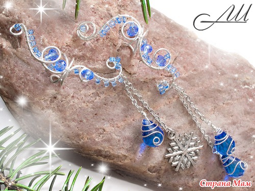 Материалы: Посеребрённая немецкая проволока, стеклянные чешские бусины, бисер, цепочки, металлические гвоздики под светлое серебро