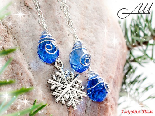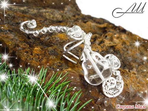 Материалы: Посеребрённая немецкая проволока, стеклянные чешские бусины, чешский бисер, металлические цепочка и подвеска