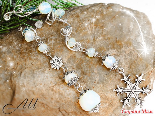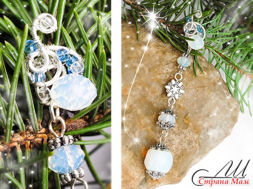 Материалы: Посеребрённая немецкая проволока, лунный камень (опал), стеклянные чешские бусины, бисер, металлические элементы