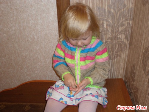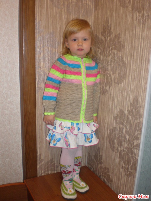 Долго мучилась какую бы кофточку связать дочке, перебрала десяток узоров и все таки решилась на кофточку от Вендулки. Он-лайн по вязанию кофточки здесь https://www.stranamam.ru/post/3044500/.