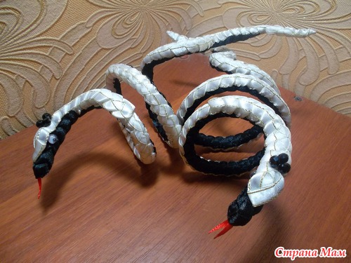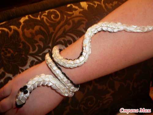 Делала ободок в виде кобры, и эта же заказчица заказала ещё пару змеек на руки(занимается танцами) ну и вот что у меня получилось, а ещё заказали вот такую заколку из инета, думаю у меня получилось, ну а эта почти такая же и ещё попробовала вот эти из органзы и атласной ленты Читать полностью