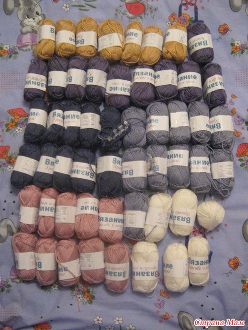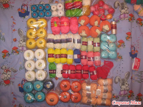 Это ниточки с моей последней закупки, в основном акрил (микрофибра), полушерсть и немного фантазийной пряжи
