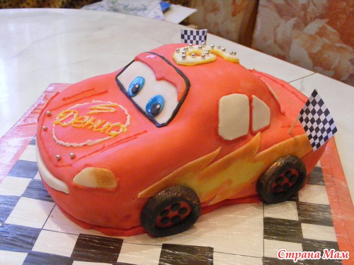 Всем здравствуйте!!! Вот и мой первый заказной. Предыстория: помогала подружке сделать Губку Боба, а кто-то из ее знакомых увидел и спросил - А ты не делаешь на заказ? Она говорит: Нет, не делаю, но могу начать. Вот и решили попробовать. Это для меня реванш, просто первый торт тачка у меня не получился (хорошо, что делала для сынули, а не кому-то), молочная мастика стекла на основу торта, а глаза тачки оказались почти на капоте