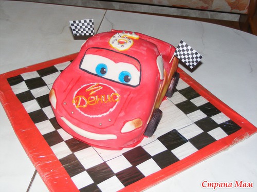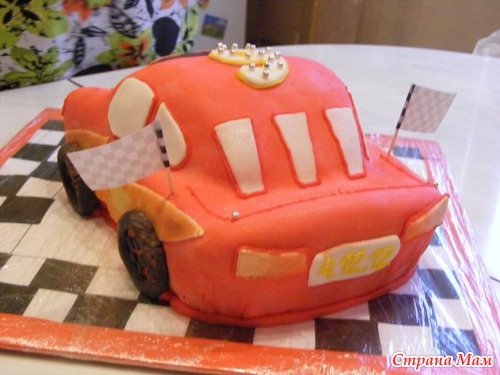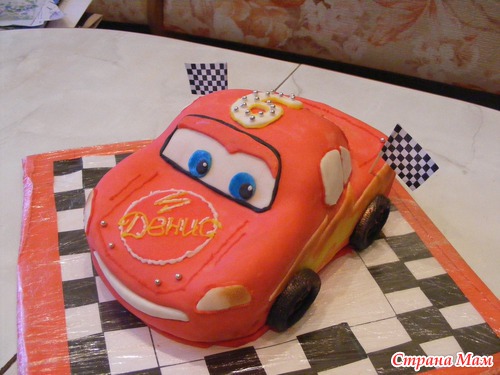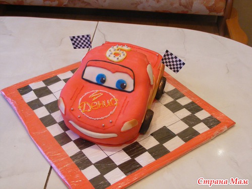 Всем здравствуйте!!! Вот и мой первый заказной. Предыстория: помогала подружке сделать Губку Боба, а кто-то из ее знакомых увидел и спросил - А ты не делаешь на заказ? Она говорит: Нет, не делаю, но могу начать. Вот и решили попробовать. Это для меня реванш, просто первый торт тачка у меня не получился (хорошо, что делала для сынули, а не кому-то), молочная мастика стекла на основу торта, а глаза тачки оказались почти на капоте