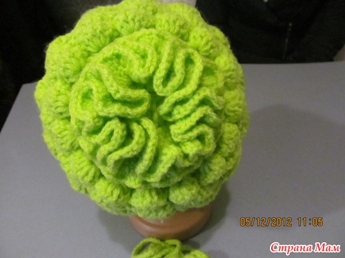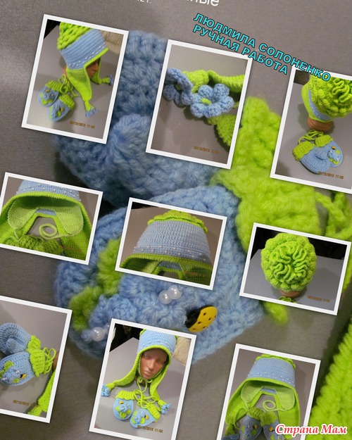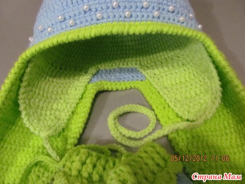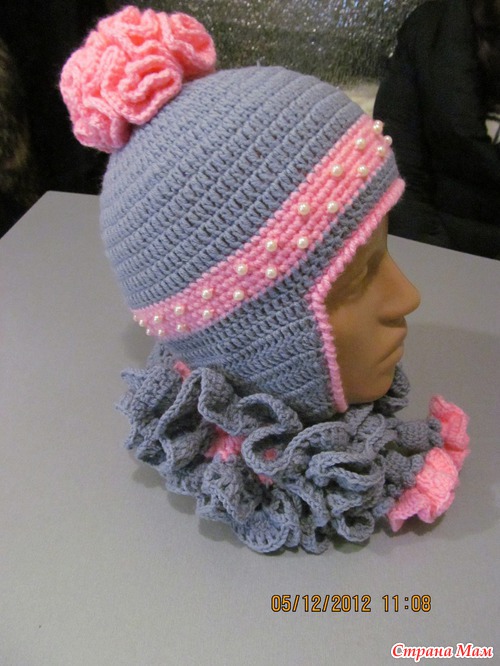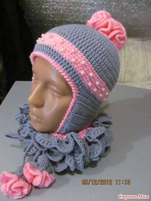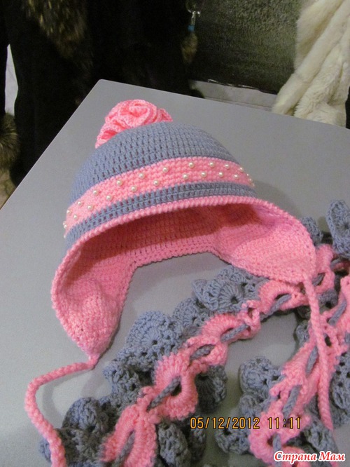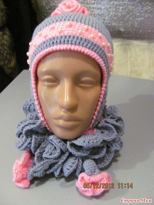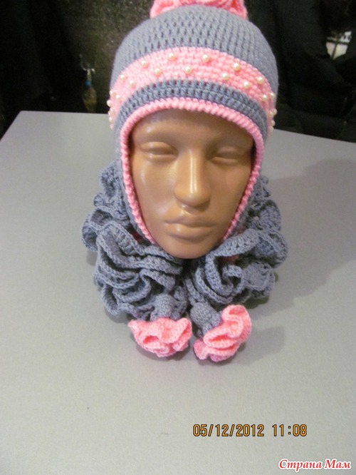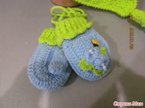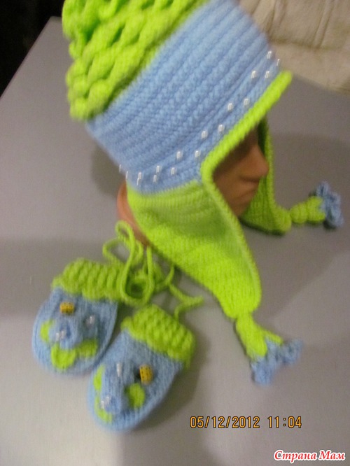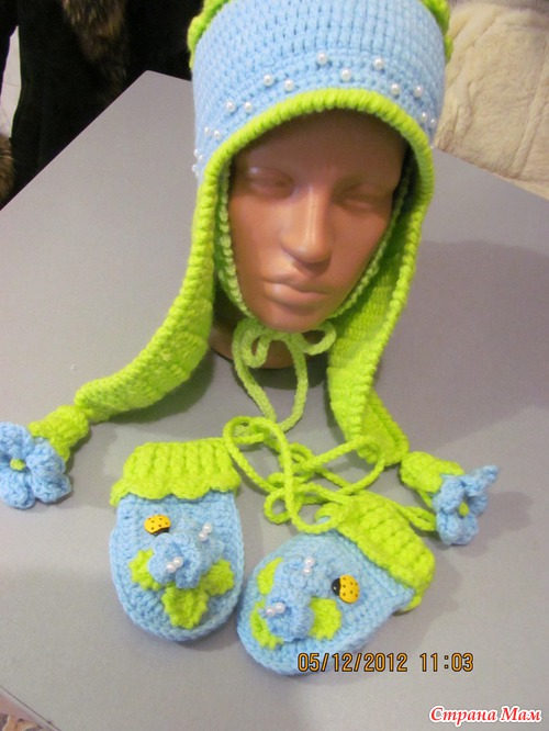 Сязалась ещё тёпленькая шапочка с двойными ушками, а к ней рукавички...