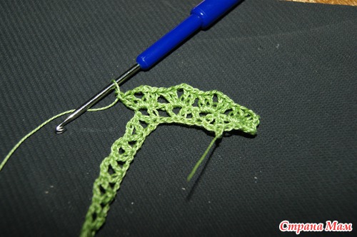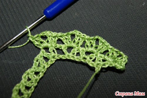 провязываем ряд до конца и скручиваем спиралькой, можно сделать 2 способами