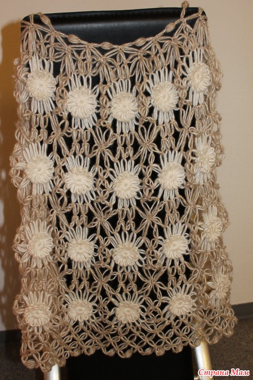 Как же мне понравилось вязать эти цветочки и потом собирать их в полотно... теперь закончила уже третий палантин в подарок и решила себя побаловать пончо в этой же технике...Вроде все получилось неплохо