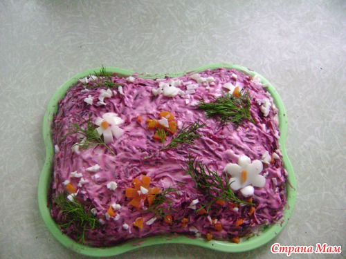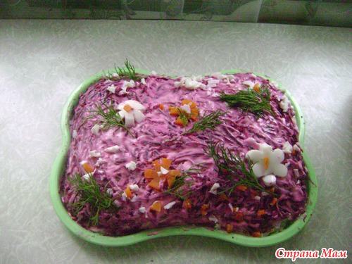 Вот и в нашей семье есть такие блюда, а именно салаты. Ни один праздник не обходится без любимой "Селедки под шубой".