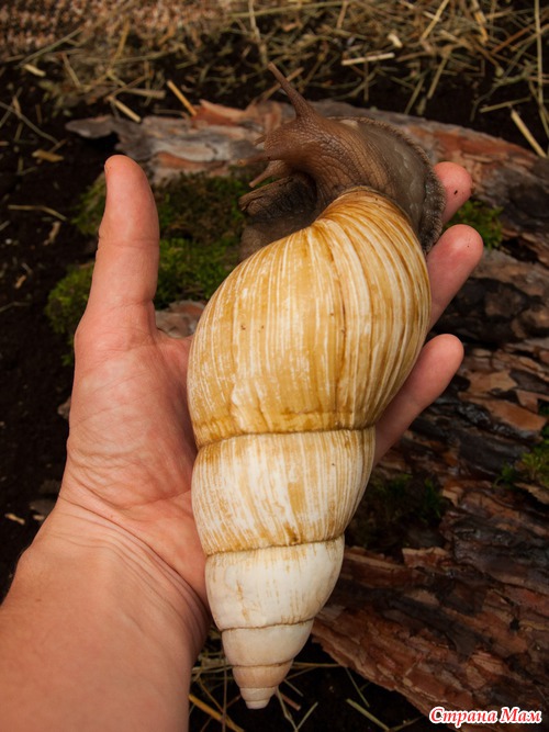 Муж принес ее с работы в стаканчике из-под пива. "Жена, знакомься - это Уля". И через два дня укатил в командировку. А еще через неделю Уля отложила сотню яиц, и в честь этого была переименована в Мамашу. А на самом деле это ахатина фулика химели вариант родаци. На форумах таких часто называют просто "родации" или "родашки".