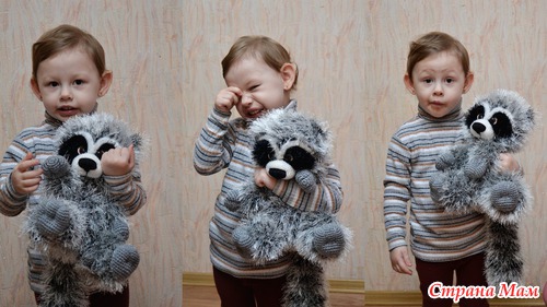 Моя доча к примеру не могла с ним ни как расстаться, а нужно было отдавать заказчице. Пришлось рассказать историю, что енотик ночью ушел в лес за конфеткой для Даши и оставил ее под подушкой.
