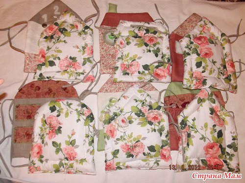 Материалы- лен и хлопок 100%. 6 цветов: 4 однотонных (белый, бежевый, зеленый, малиновый) и 2 набивных (с розочками и яблочками).