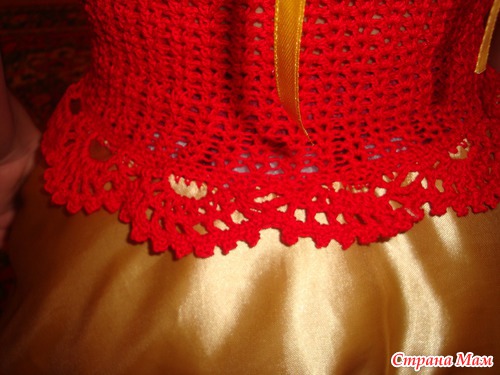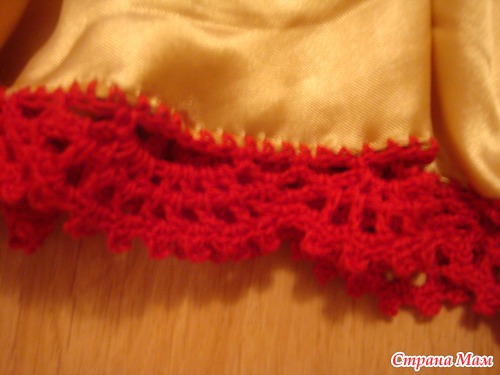 верх вязаный красный, низ атлас желтый.