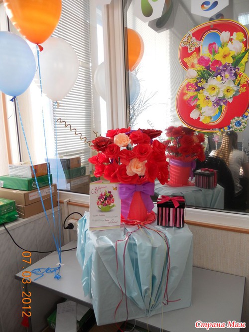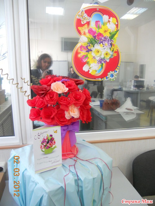 Ну как можно пройти мимо такого замечательного праздника, как 8 Марта! для нас любимых все самое лучшее и красивое! например вот эта корзина с цветами. милое очарование, украсившее нашу офисную обитель на целую неделю. коллегам моя идея очень понравилась и мы не смогли оставить это без фотосессии...