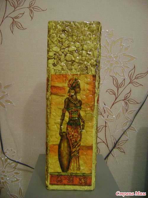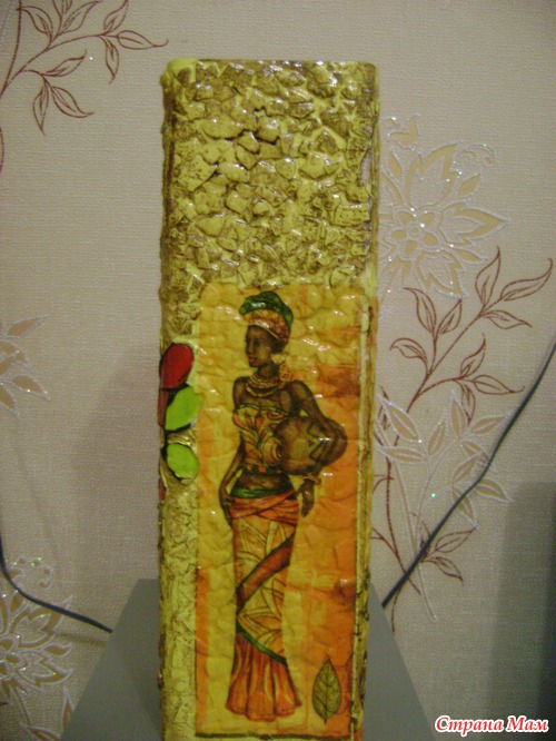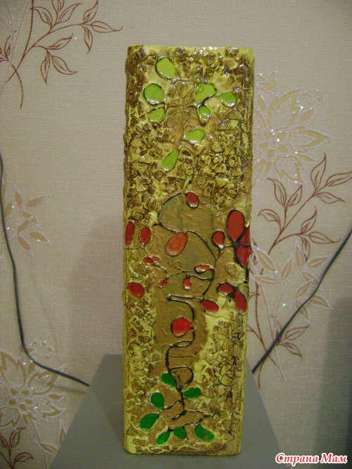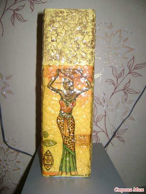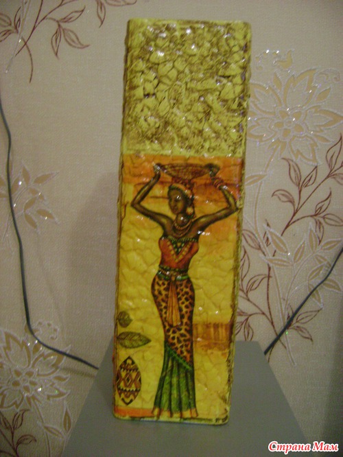 Была у меня ваза. Красивая... Была она покрыта ни то краской, ни то пленочкой какой-то, которая со временем начала облазить. Выкидывать вазу жалко, вот и решила я ее преобразить