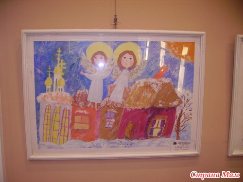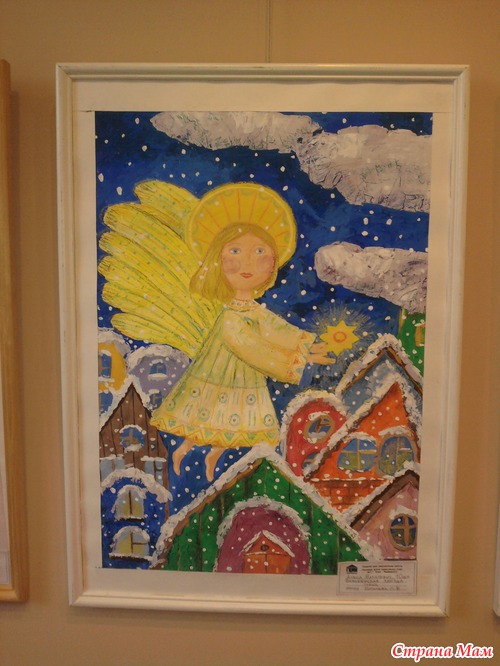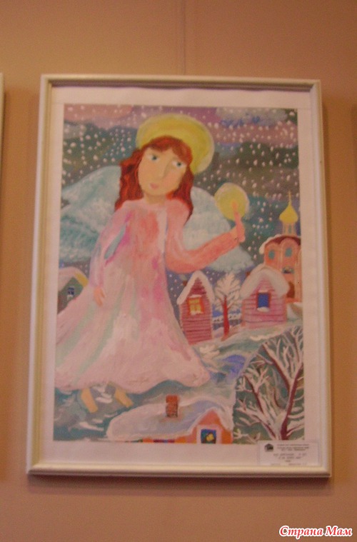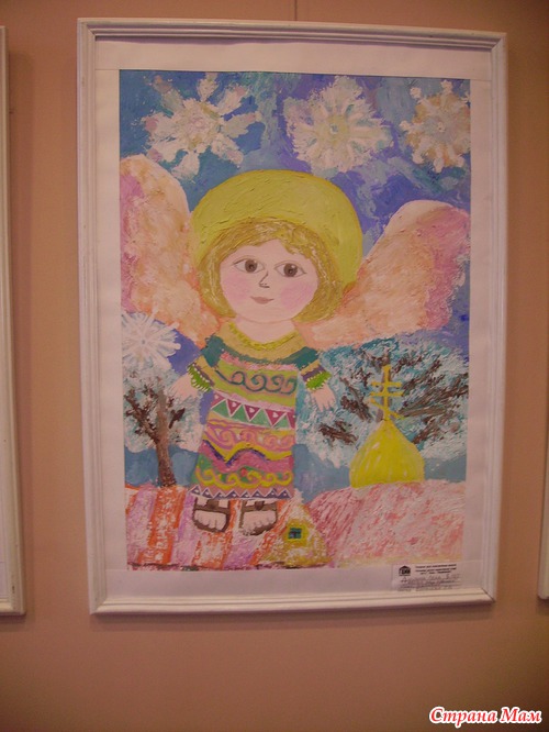 Ну а теперь о выставке. Школа уже пятый год проводит выставку "Ангел пролетел". Третий год выставка проходит в Городском центре изобразительных исскуств. В экспозиции представлены работы учеников школы, исполеные в различных техниках.