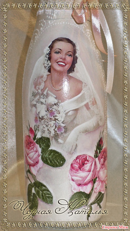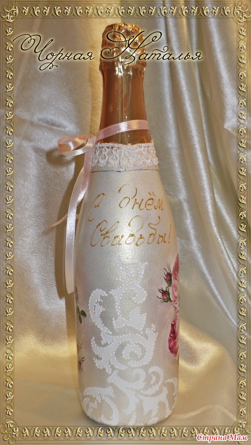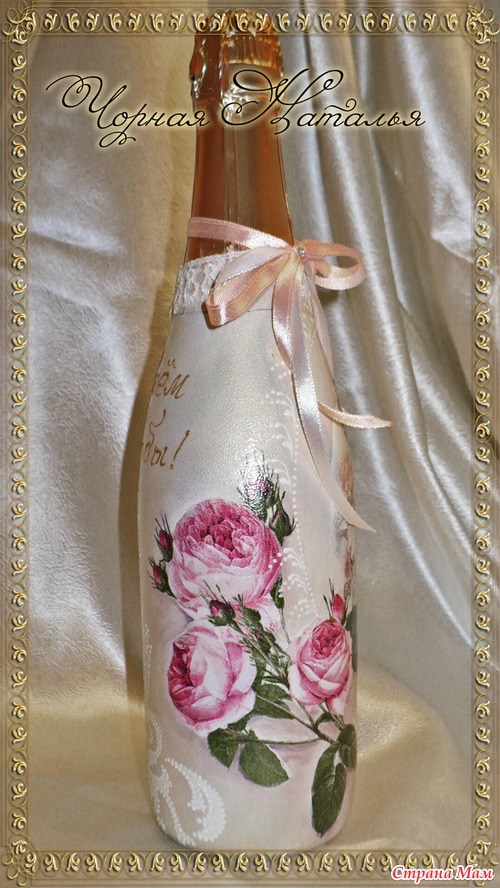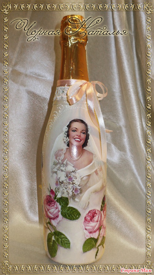 Тэги: декупаж бутылки, декупаж свадебного шампанского, декупаж шампанского
