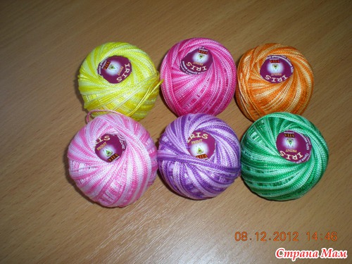 Когда я попала на сайт «Страна мам», я почувствовала, что стала заражаться какой-то странной болезнью))) У меня появилось желание покупать нитки впрок. Запасы стали пополняться. И вот последнее приобретение – нитки «Ирис» секционного окрашивания. Что буду вязать, не знаю, но думаю уйдут, у меня 3 внучки, а впереди лето