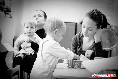 Сейчас, когда не придешь, тишина, все заняты своим делом. Кто то играет за столом, кто то в игрушки, кто то книжки рассматривает... рыдания прекратились. Это радует, все таки психологически довольно тяжело отправлять ребенка в группу, когда там все плачут.